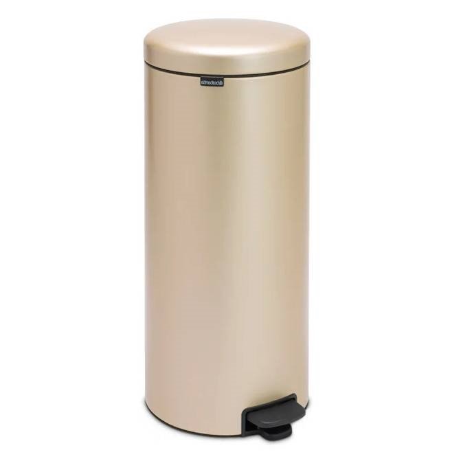 This Stainless Steel 8-Gallono Kitchen Trash Can with Step On lid in Champagne Gold has plenty of capacity for a busy family home. A great choice for the kitchen or your hobby room. The newIcon step cans are not only iconic beauties, but theyíre reliable workers too. Thanks to the unique soft-closure feature, the lid closes smoothly and very quietly.